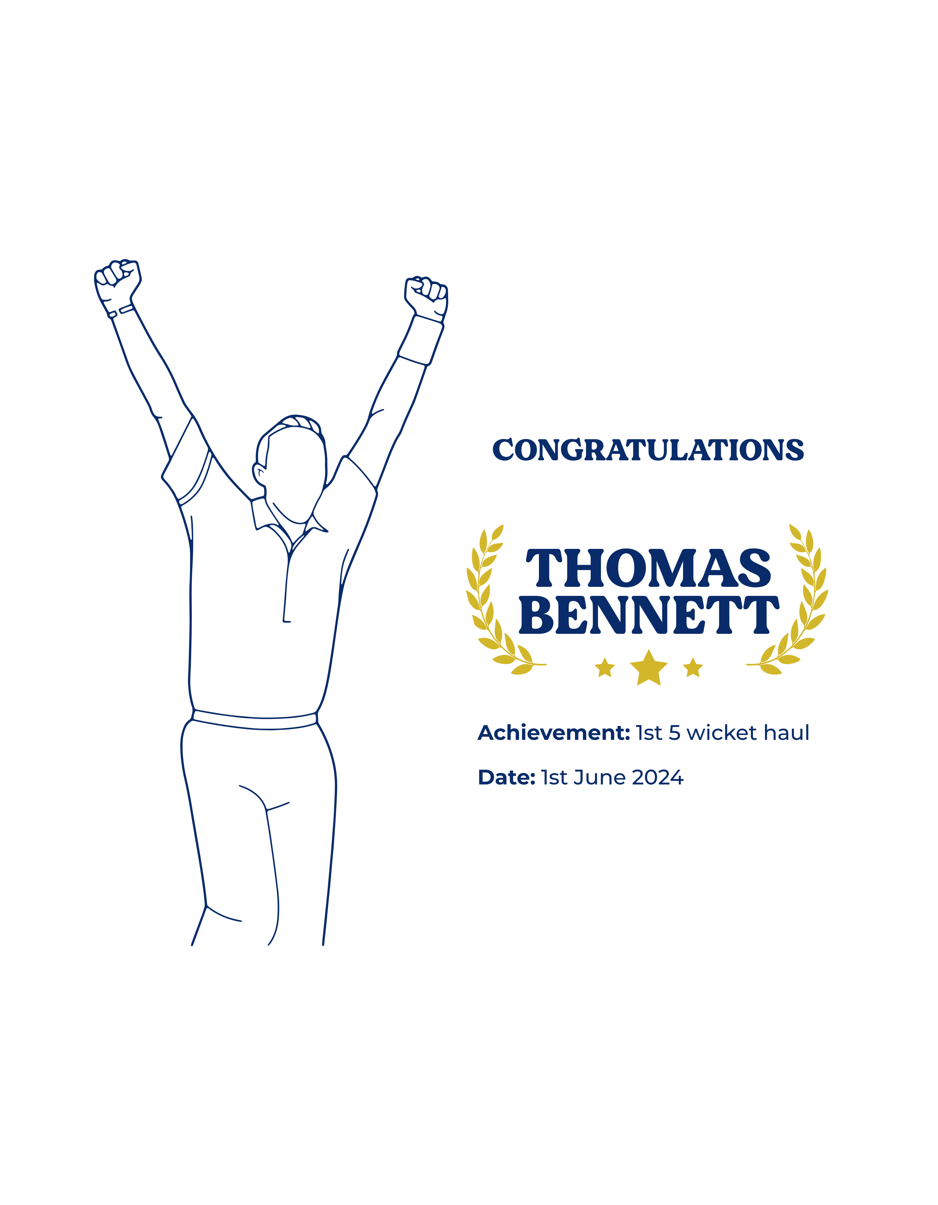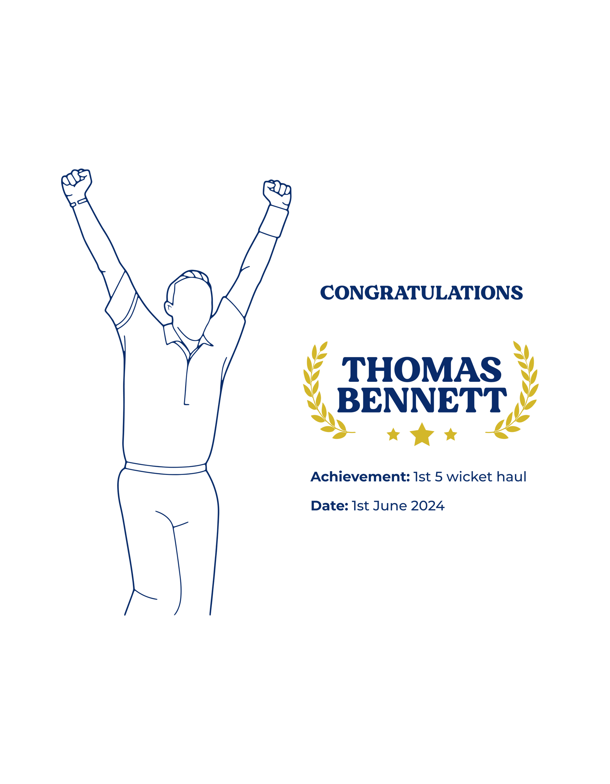 • Personalised embroidery with cricket design, bowling achievement, date, and message