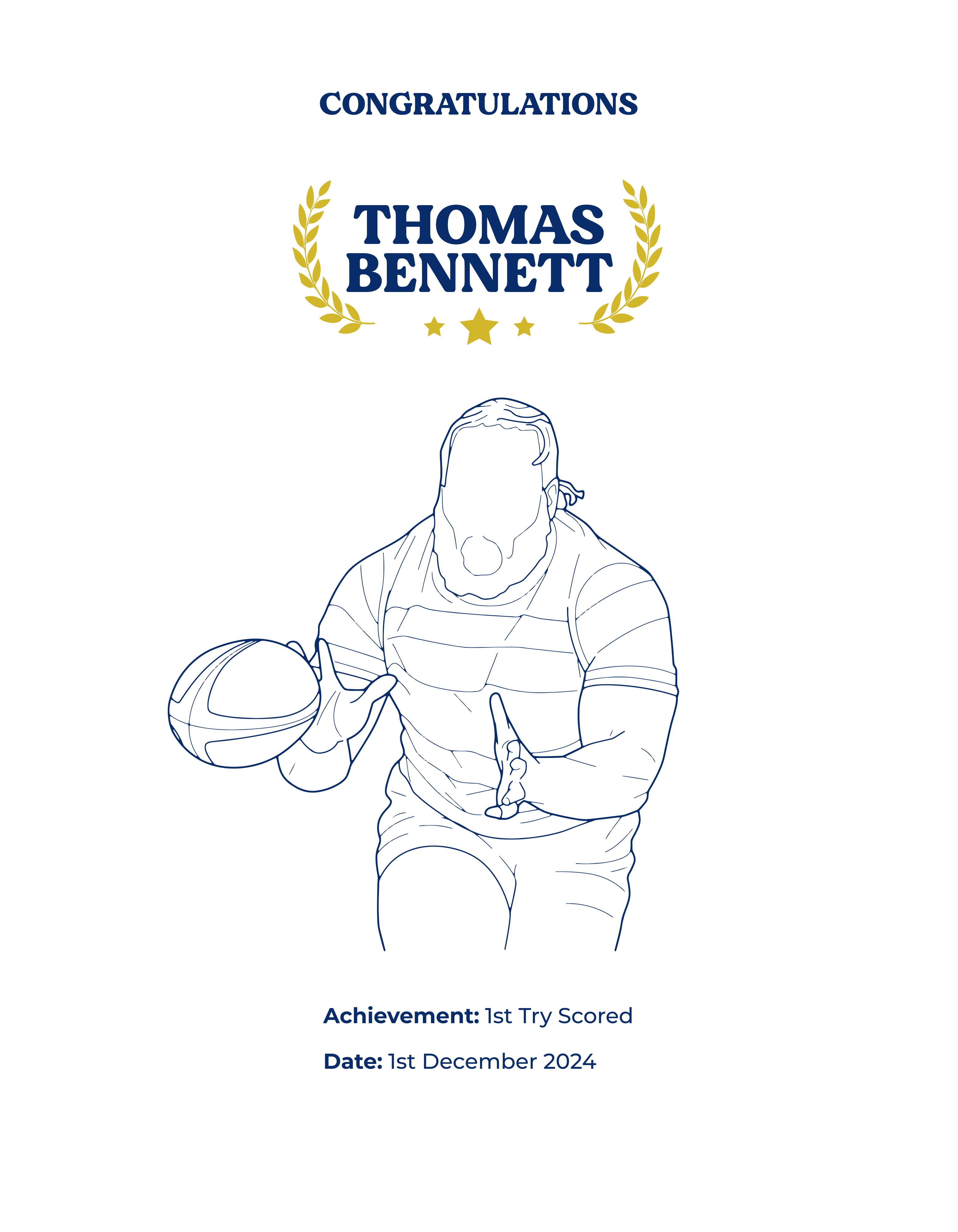 • Personalised embroidery with rugby design, achievement, date, and message
