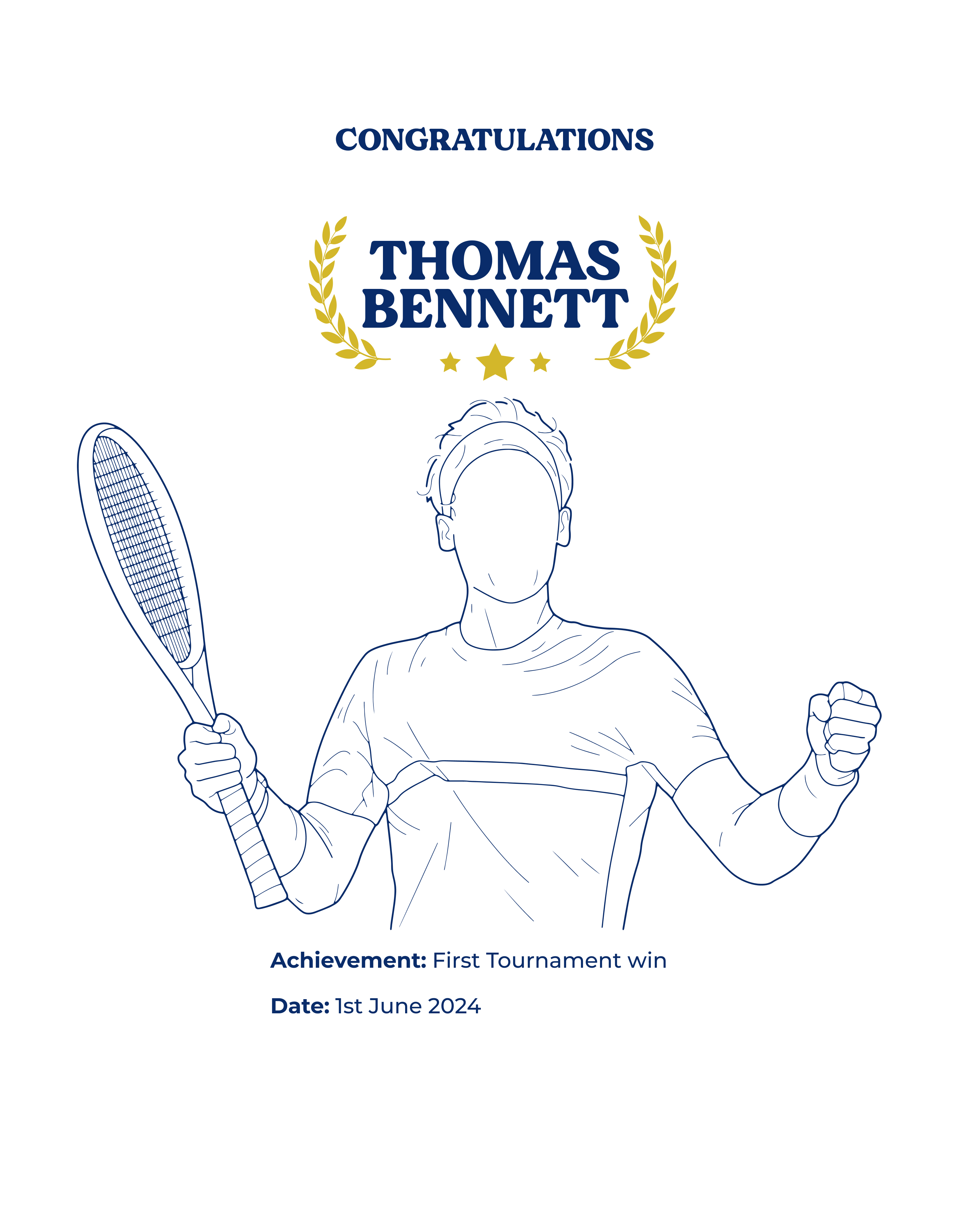 • Personalised embroidery with tennis design, achievement, date, and message